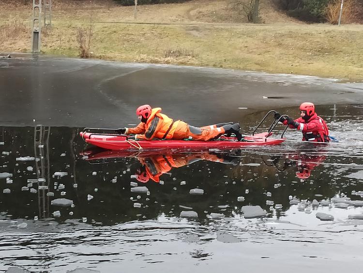 Gostynińscy strażacy na ćwiczeniach doskonalących z zakresu ratownictwa lodowego