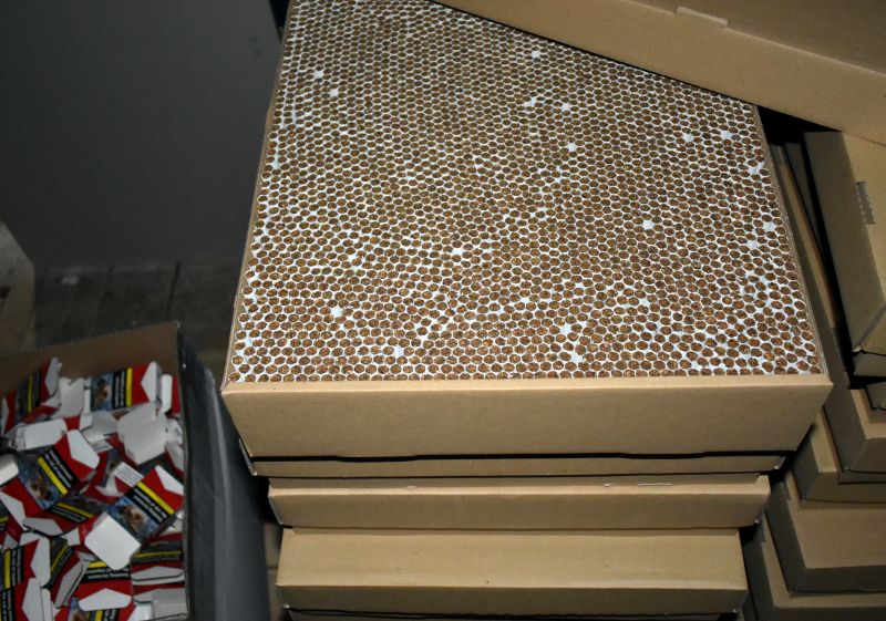Milion sztuk nielegalnych papierosów na prywatnej posesji, a mężczyzna ukryty w schowku
