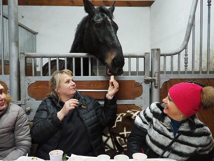Uczestnicy dowiedzieli się wielu ciekawostek dotyczących właściwości terapeutycznych siana a na koniec tego pełnego wrażeń dnia podczas wspólnej integracji śpiewali kolędy przygotowując się do zbliżających się Świąt Bożego Narodzenia przy poczęstunku ze zdrowych lokalnych produktów zorganizowanym w stajni, pośród koni .