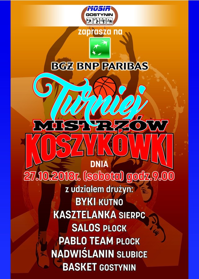 W najbliższą sobotę (27 października br.) w hali MOSiR przy ul.Kunowskiej w Gostyninie zostanie rozegrany "Turniej Mistrzów Koszykówki".