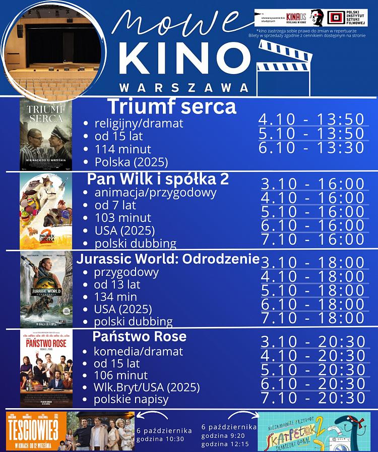 "Nowe Kino Warszawa" w Gostyninie przygotowało na nadchodzący tydzień (od 3 do 7 października) bogaty i zróżnicowany repertuar, który z pewnością zadowoli zarówno miłośników dramatów, jak i rodzinne grono szukające rozrywki.