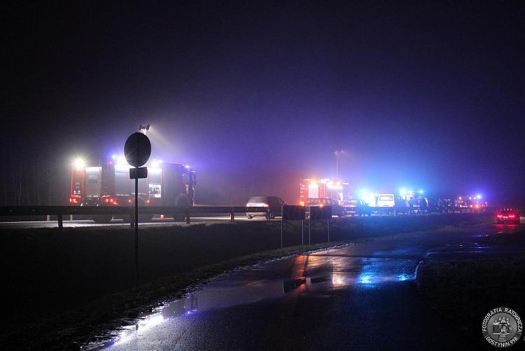 Na miejsce udały się dwa zastępy z JRG Gostynin oraz jeden zastęp z OSP KSRG Gostynin. Jeden z samochodów uderzył w tył drugiego auta, w wyniku czego 36-letni kierowca peugeota doznał obrażeń. Mężczyzna został przetransportowany do szpitala.